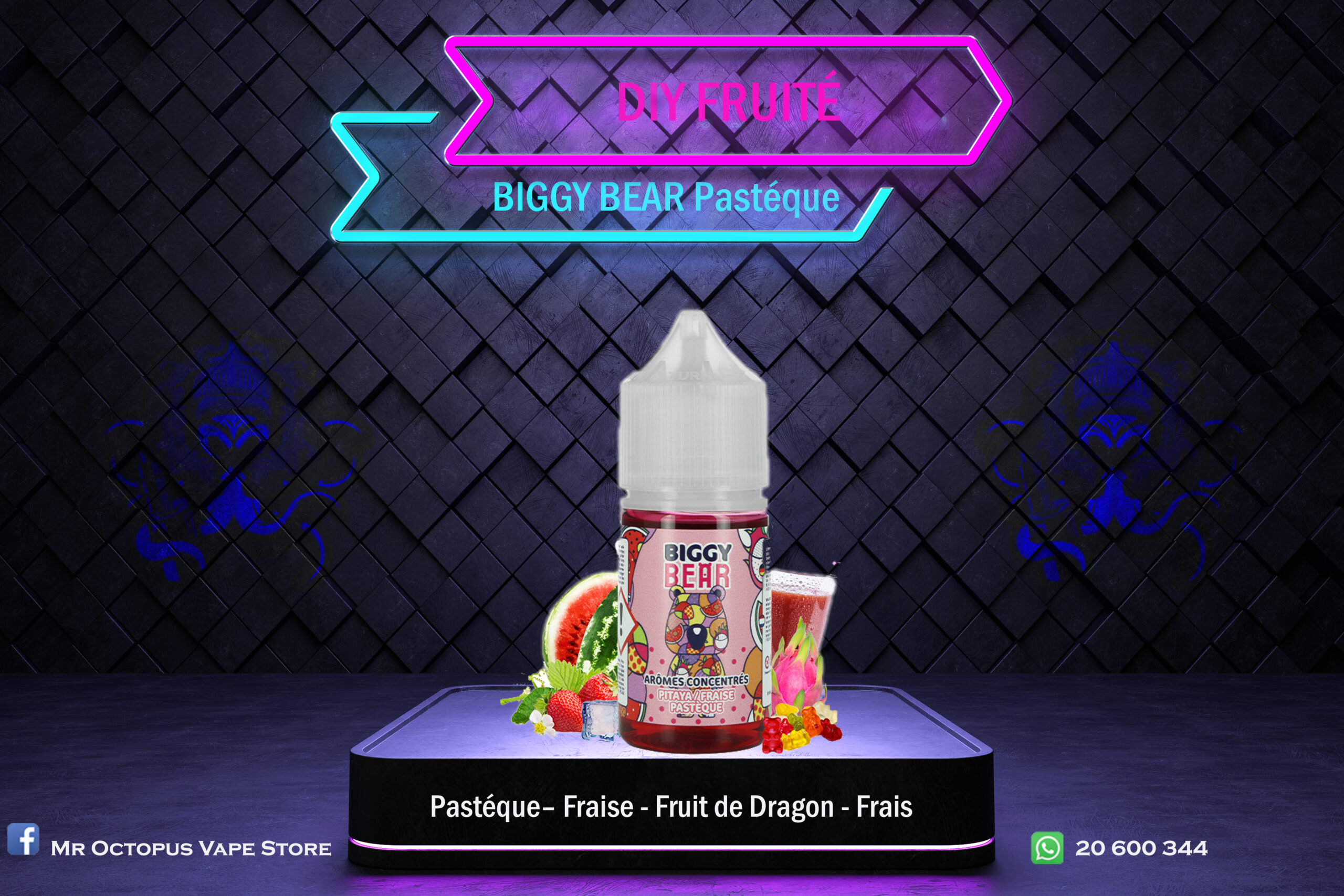 Ce n’est pas tous les jours que l’on peut savourer un mélange aussi délicieux que celui proposé par le E-LIQUIDE BIGGY BEAR FRUIT DU DRAGON FRAISE PASTEQUE. Secret’s Lab réinvente les plaisirs de l’été avec ce trio exceptionnel, mêlant la douceur de la pastèque, l’acidité rafraîchissante de la fraise et l’exotisme du fruit du dragon. Chaque inhalation est une promesse de fraîcheur, rappelant le goût sucré et acidulé des bonbons gélifiés de notre enfance.